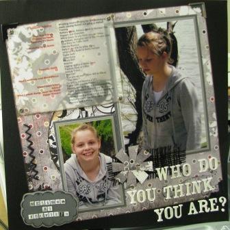 I again used this Challenge to interview my DD to get her thoughts and feelings at 14.The rectangle is behind the photo as a matt, the smaller rectangle is a matt behind the smaller photo, the cloud has a sub title, the star is an embellishment, I've used hand stitching at the left and hand-written the date. I've used Bazzil CS and Basic Grey PP & AC Thickers.