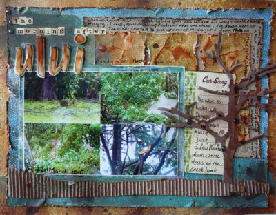 My take on Helen's blind scrap. I tried to convert the instructions to 8.5x11 size but got a bit stuck so had to rearrange things a bit. I ended up moving my squares to the edge of the matt so they would be visible and then put it to one side and the photo to the other instead of the middle and then the journalling spot had to go on the same side as the embellie. Anyhoo it's all good and I'm happy with my LO, different as it may be. Thanks Helen.
