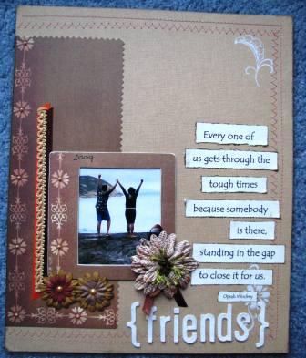 While we were enjoying our Scrap Retreat, DH took DD and friend Camping and this was one of the snapshots - I just love it. I have used DCWV Cardstock, Cosmo Cricket PP, AC Thickers, KC Flowers, Prima Flowers, KC Pearls, Collections Elements Chipboard Frame, BG Rub Ons and ribbons from my stash.