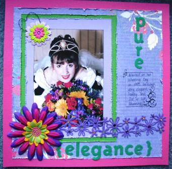 This is my gorgeous Sister on her Wedding day and her flowers were just stunning! I have used DCWV Cardstock, AC Cardstock, KC Fozz Felt, KC Rhinestones, KC Rub Ons, KC Flowers, Green Tara Flowers and AC Thickers.