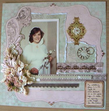 So KC Duchess papers again with matching embellies and rubons, Cosmo Cricket And AC velvet ribbons. Assorted flowers and bling plus some gorgeous sparkly ribbon I made into flowers and buds