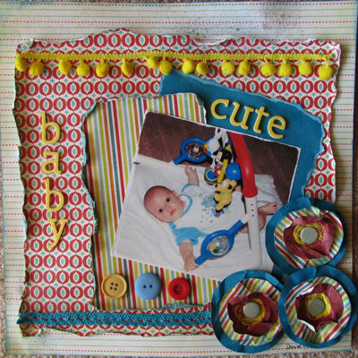 ooh those little flowers and the layering- just fabulous. the pom pom trim just pops on the page too!