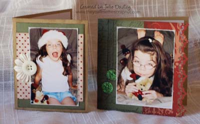 Here are two of my photo cards for this year. Made four of each using up papers from the Dash away Kaiser papers.