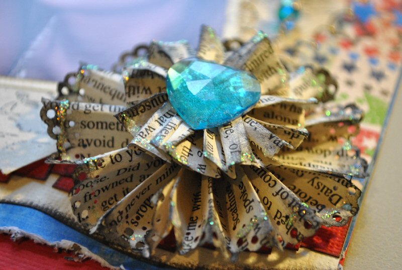 My take on the colour challenge using Bo Bunny PP, Stickles, Tim Holtz ink grunging up my flowers a little and a handmade bead vine. TFL