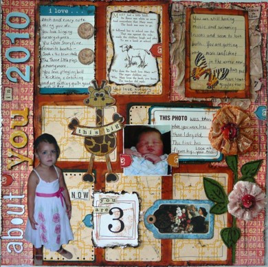 I decided to use the sketch chall. to do a title page for my GD's album for 2010. I'm glad I kept the leftover bit from the OA Country fair journalling cards sheet coz I just ran some ink and a baby wipe over the top of it and it made a perfect frame. Used SassLass (applejack)for b/ground and reverse side for under the frame. Not sure that this page represents a change?? more of a growth I guess but I needed a title page and I loved the sketch...good enough reason lol. tfl