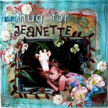 My take on Sarah's theme challenge. I went with the leaves and butterflies combo. Made the butterflies from 4 leafed flowers, inked them and added DM. I bought this giraffe ornament for my garden and decided to name her Jillie but my little GD decided it wasn't a very good name and that we should call her Jeanette. So Jeanette it is. tfl