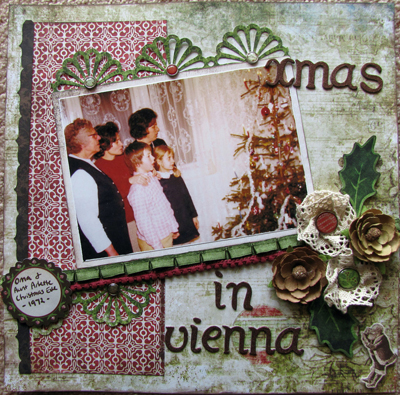 I was inspired by by the warm reds, greens and creams and also the feel of family and togetherness. The picture is of my grandmother and aunty admiring the christmas tree on christmas eve 1972 in Vienna. Traditionally Austrians put up their xmas tree on xmas eve and ususally the whole family gets involved.